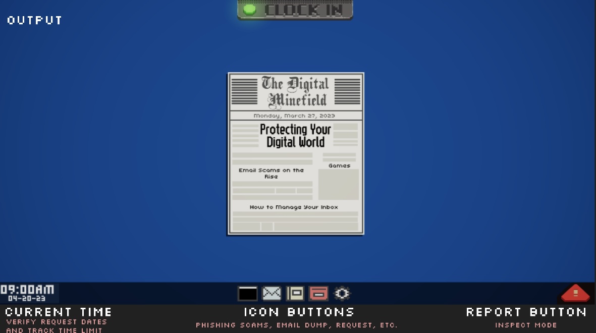 A game focused on cybersecurity fundamentals with fun and engaging gameplay experience. My goal is to help players of all ages and backgrounds learn the importance of cybersecurity. Through challenges and interactive scenarios, users will gain a practical understanding of concepts such as password security, phishing, and data encryption.